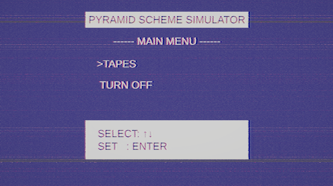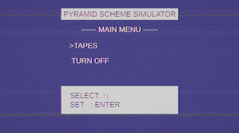 A strange tape with a simulator for a pyramid scheme.